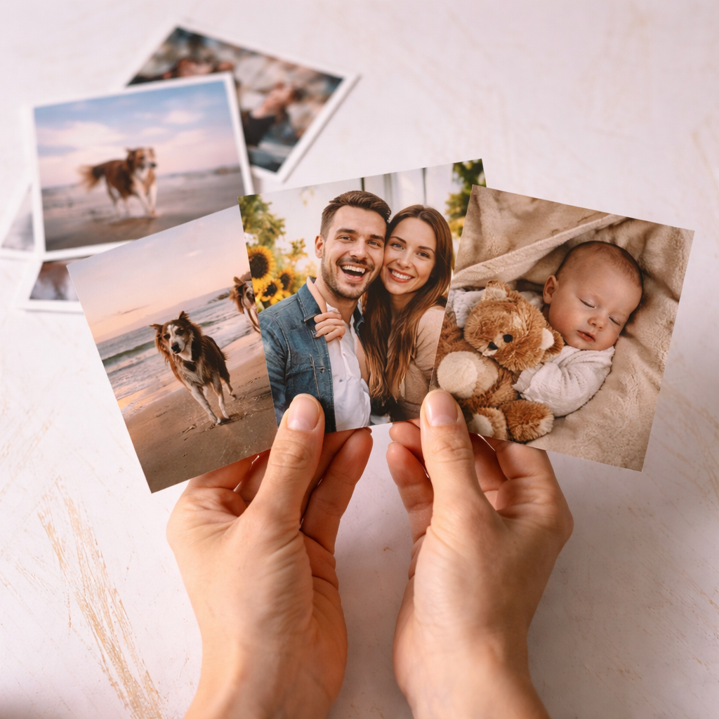 Imprime tus recuerdos con la mejor calidad en revelado digital profesional, ideal para conservar tus fotos más especiales o regalarlas en tamaño 13x13cm.