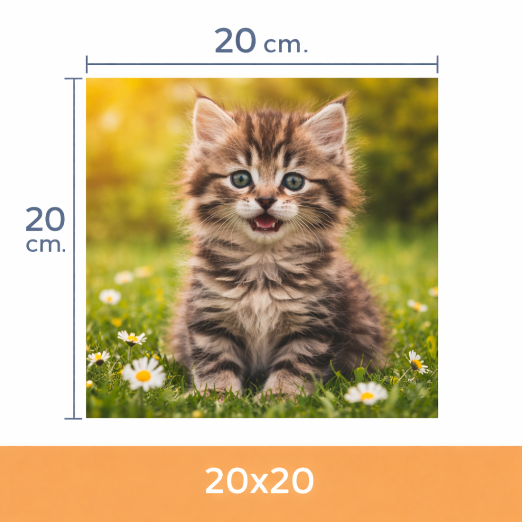 Imprime tus recuerdos con la mejor calidad en revelado digital profesional, ideal para conservar tus fotos más especiales o regalarlas en tamaño 20x20cm.