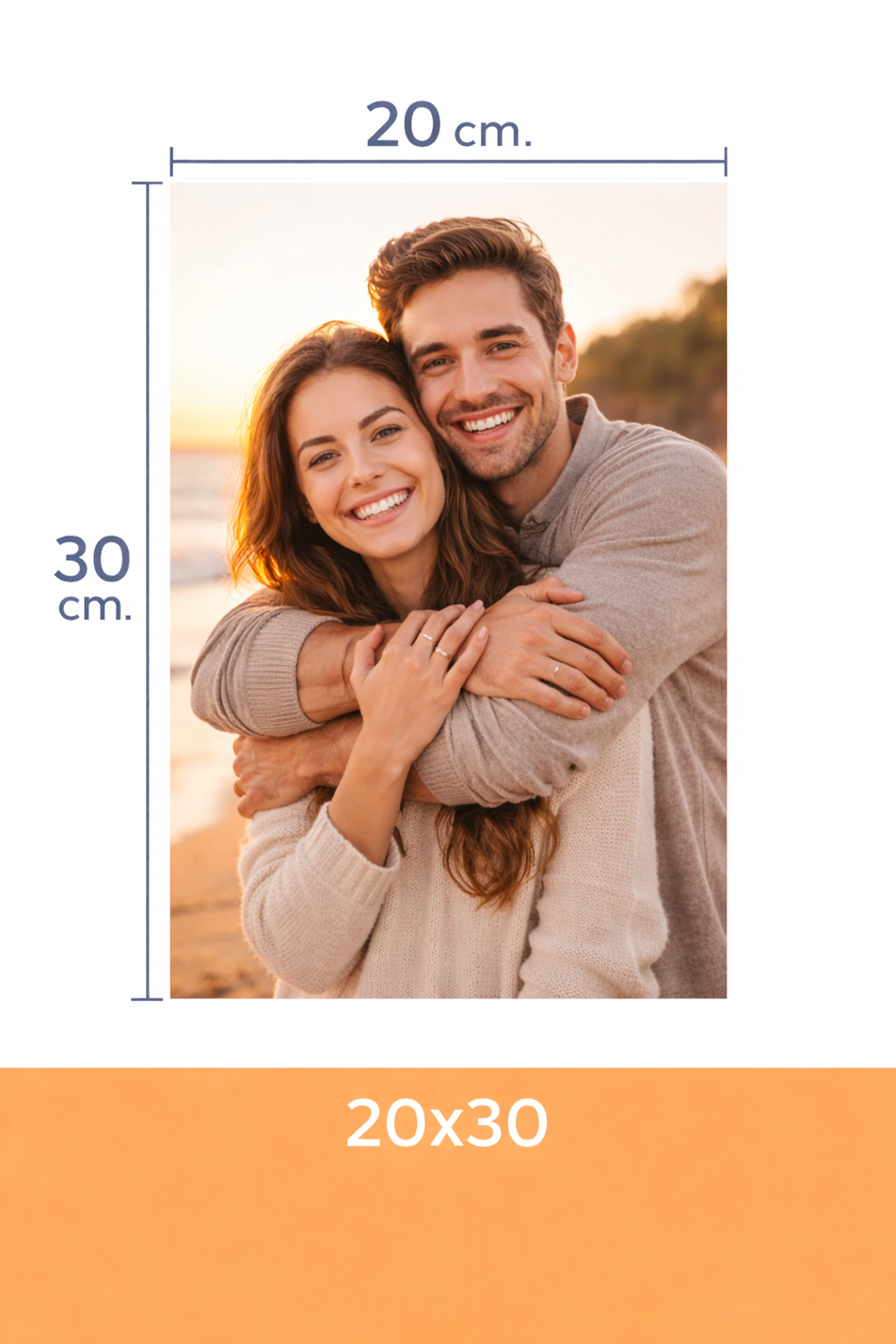 Imprime tus recuerdos con la mejor calidad en revelado digital profesional, ideal para conservar tus fotos más especiales o regalarlas en tamaño 20x30cm.